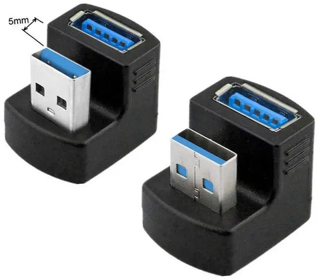 Angled USB 3.0 Adapter, Type A Male/Female,Support 5Gbps data transfer rating.