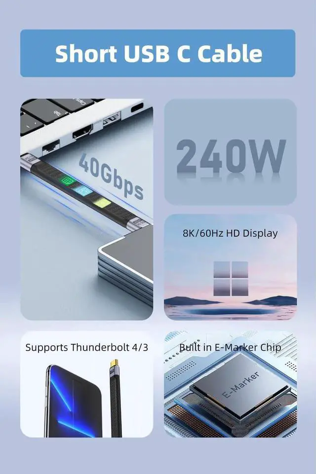 Short USB C Cable 5.3 inch, USB C to Type C 240W Fast Charging USB 4 Cable Supports 8K HD Display, 40Gbps Data Transfer for Thunderbolt 4/3, Laptop, Tablet, Phone and More