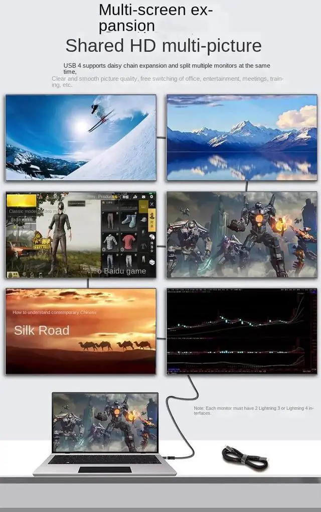Up to 8K UHD Video: With this USB4 cable to stream display video content to a single display up to 8K/6K, or to two displays in 4K. (Dual monitors require 2 cables. ) It's also perfect for connecting your docking station or laptop to a monitor with astonishing resolution, contrast, and color depth so you don't miss every detail.
