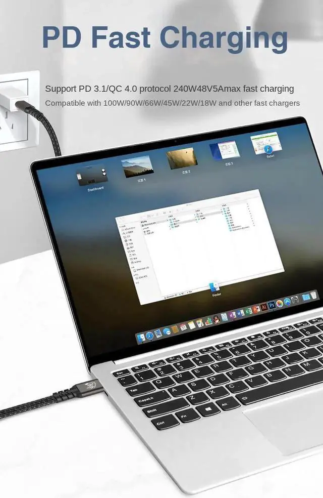 Fast moving Files: The theoretical maximum transmission speed of our 240W USB4 data cable is 40Gbps, which means that 2.5G files can be transferred in 1 second (The real transmission speed up to 2.8GB /s Read and 2.1GB /s Write), and just plug and play freely.