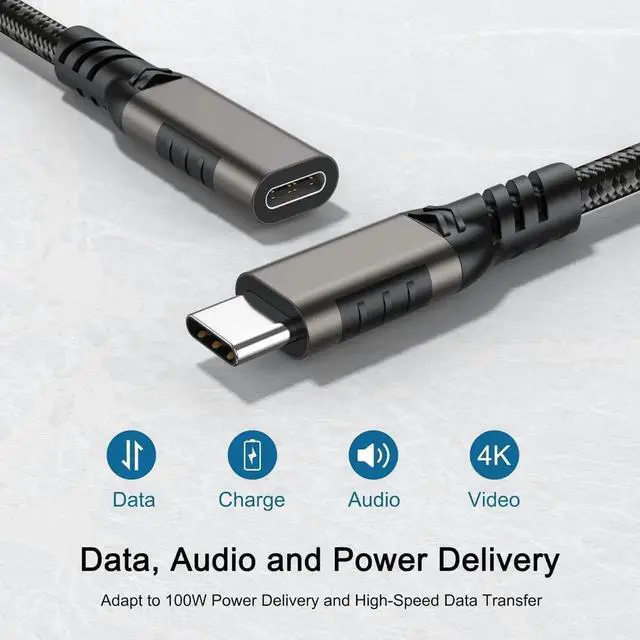 -USB C Extender Cord Works To Extend USB C Charging Cable And Supports Super Fast Charging Which Can Charge Your Devices At Up To 100W(20V/5A) Max, And Supports Stable Voltage For Your Type-C Devices.