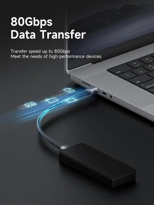 80Gbps Super Fast Data Transfer: USB C data cable supports the USB4 Ver2.0 standard with unmatched data transfer speed up to maximum 80Gbps bandwidth for 80Gbps compatible Thunderbolt 5 devices; This USB C cable is also compatible with 40/20/10/5Gbps; Transfer music, movies, or entire seasons of TV shows in seconds at maximum 80Gbps