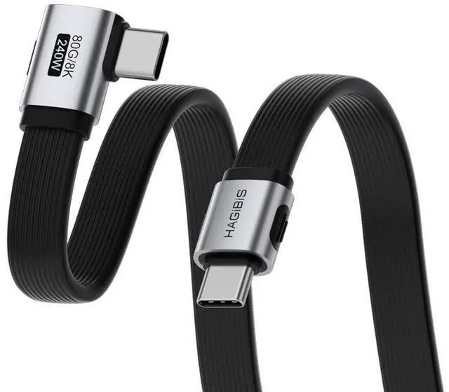 Vszerda USB4 Cable, 80Gbps Data Transfer, 240W Fast Charging USB-C Cable, 8K@60Hz USB 4 V2.0 Short Cable for iPhone 17 16 15 Pro Max, iPad Pro, Thunderbolt 5/4 (Side 90 Degree, 1.6FT)