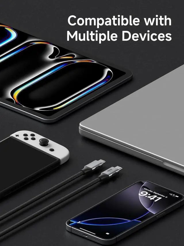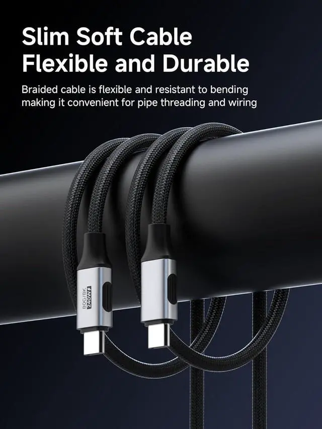 Vszerda USB4 Cable, Flexible Slim USB Type C Cable 80Gbps Data Transfer 240W Fast Charging 8K@60Hz Video Cord - Fit for Thunderbolt 5 4 3, for iPhone 17 16 15 Pro Max, MacBook Pro Air (3.3FT)
