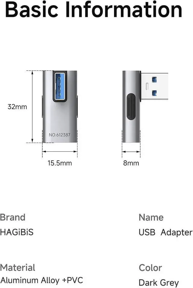 Vszerda USB 3.2 Adapter 2 Pack, 90 Degree Right and Left Angle USB A Male to Female Connector OTG Adapter Cable Extender for Laptops Charger PC Car Mouse Keyboard (Vertical Back)