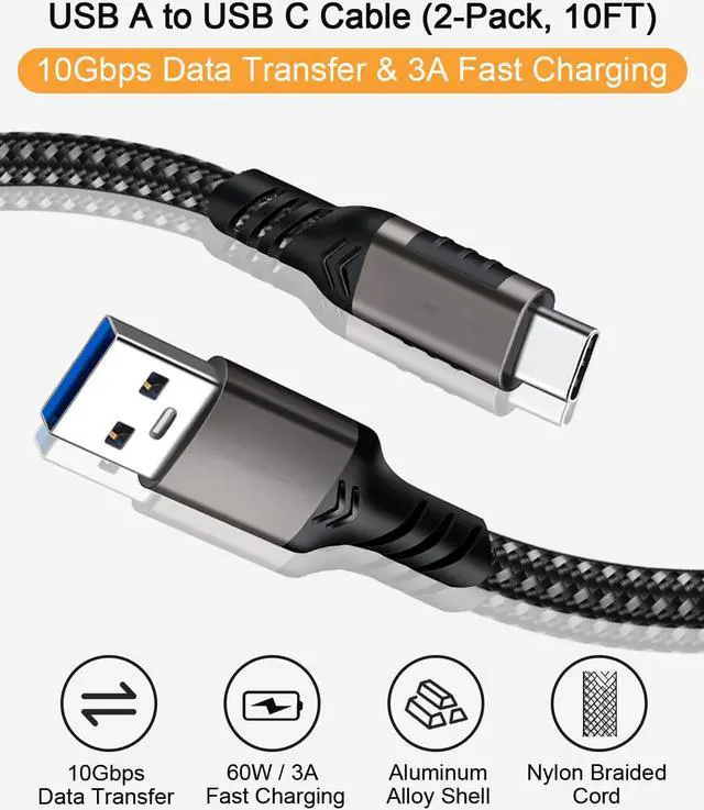 ![Alt view image 3 of 7 - USB A to USB C Cable [2 Pack 10ft], USB 3.1/3.2 Data Transfer and 60W 3A Fast Charging Cable, for Android Auto S-a-m s-u-n-g Galaxy S23 S22 S21 S20 Ultra and Other Type C Phone Laptop PC Devices](https://c1.neweggimages.com/productimage/nb640/AR4TS2304270GE1ET53.jpg)