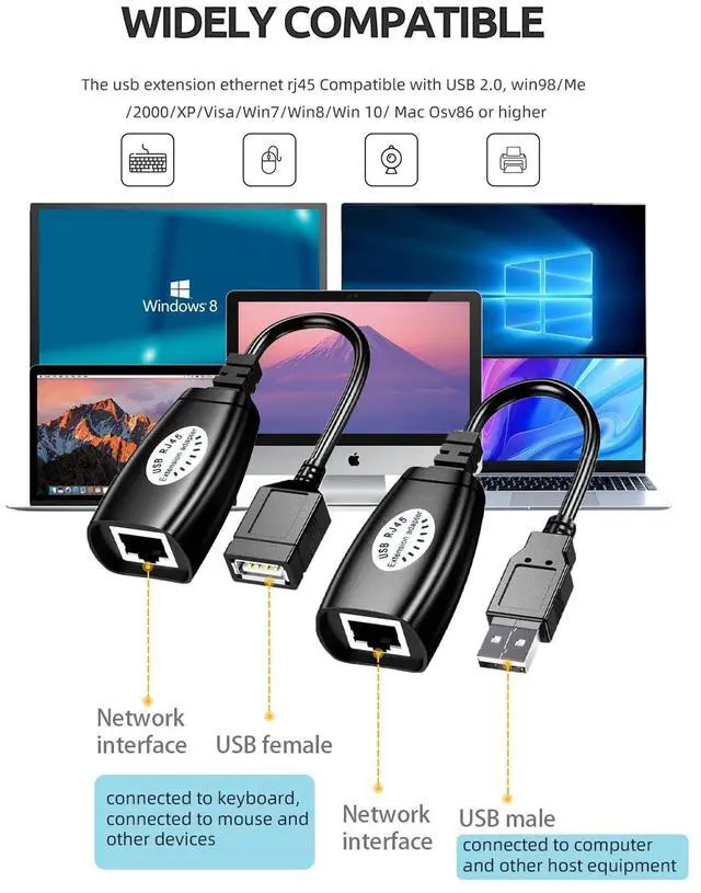 With all laptops, USB cameras, mouse extensions and any other USB devices.Compatible Software: Windows 8.1/8/7/Vista/XP//2000 - Mac OS X 10.6 and above.Ideal for use with USB cameras, printers, web cams, keyboard/mouse extensions and any other USB devices.