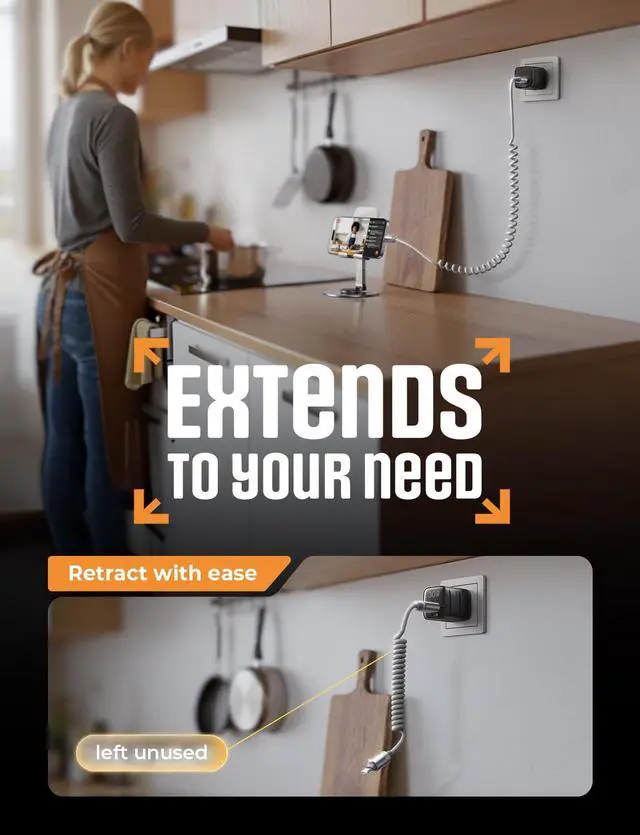 Coil Freedom 1-4ftUSB C cable features a 1ft natural length extending to 4ft max, delivering optimal comfort at 2-3ft. Crafted from full 1.5m straight cable coiling to true 1.2m, unlike imitations using 1m material that shrinks to just 0.7m, it enables smooth navigation, calls and code scanning in your car for tug-free and snag-free use
