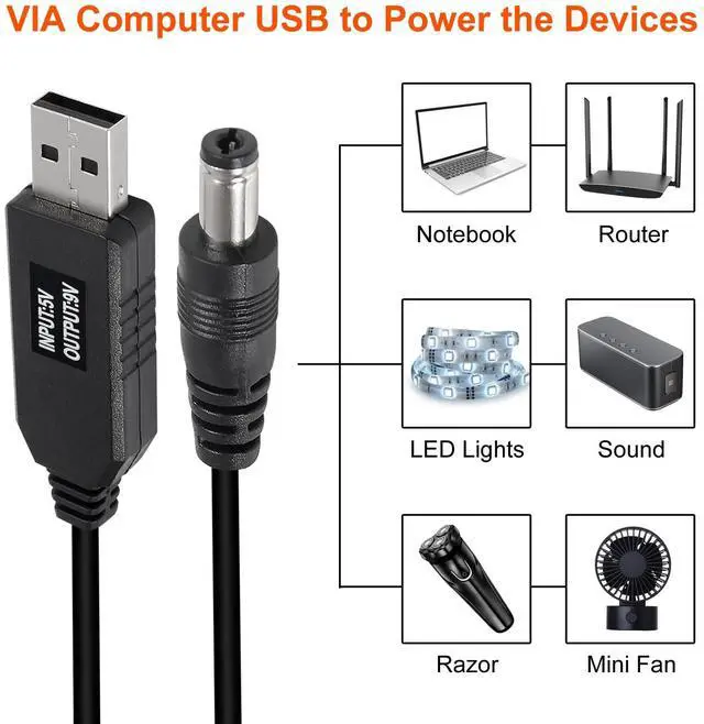 USB DC 5V to DC 9V Voltage Power Supply Cable