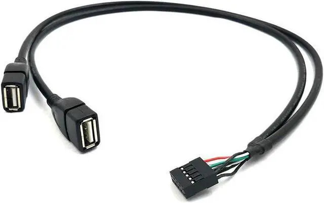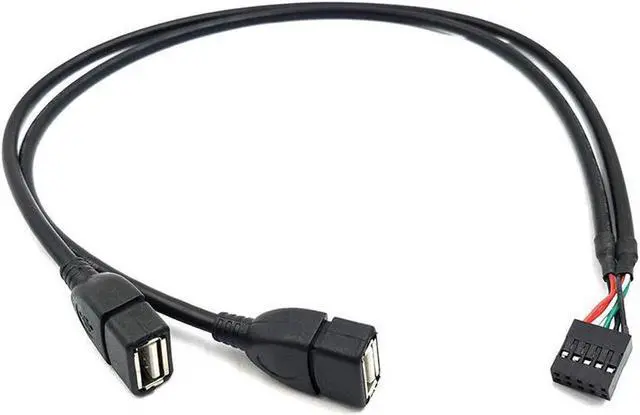 • (2 Pack) 50CM Dupont 10 Pin Female Header to 2 Port Dual USB 2.0 Type A Female Motherboard Extender Splitter Cable