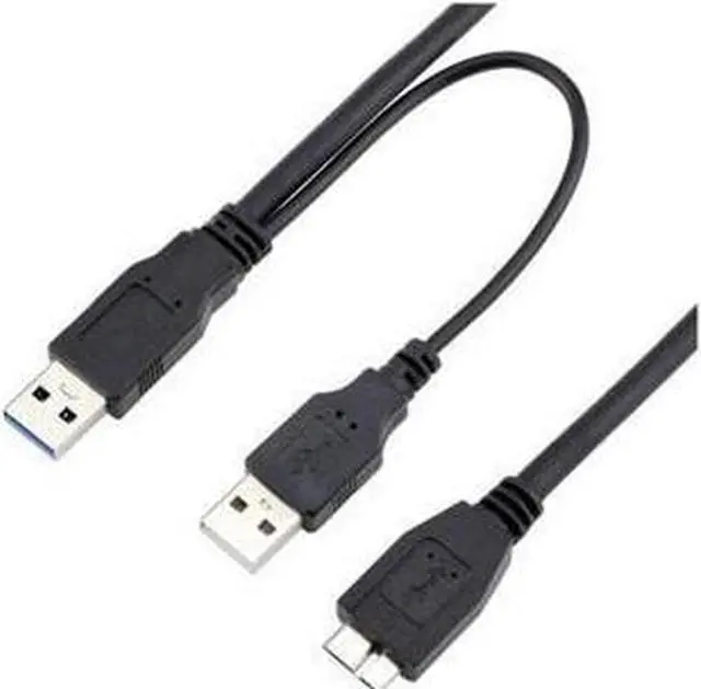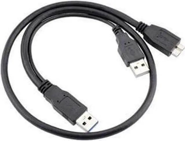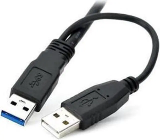 USB 3.0 y-cable provides a transfer rate of up to 4.8 Gbps when connected with a USB 3.0 compliant host and device. Twisted pair cabling and shielded construction ensure our USB 3.0 cable meets or exceeds current USB 3.0 SuperSpeed standards. Molded strain relief protects ensures years of trouble-free data transmissions. An additional USB type-A connector allows the cable to be connected to two USB ports ( 2.0 or 3.0 ) for maximum power and performance.