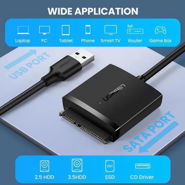The USB 3.0 to SATA adapter cable allows you to connect any standard 2.5" or 3.5" SATA HDD mobile enclosure to your computer/laptop via USB 3.0 Port at speed up to 5Gbps. It is ideal for you to backup files or upgrade your notebook/PC hard drive.