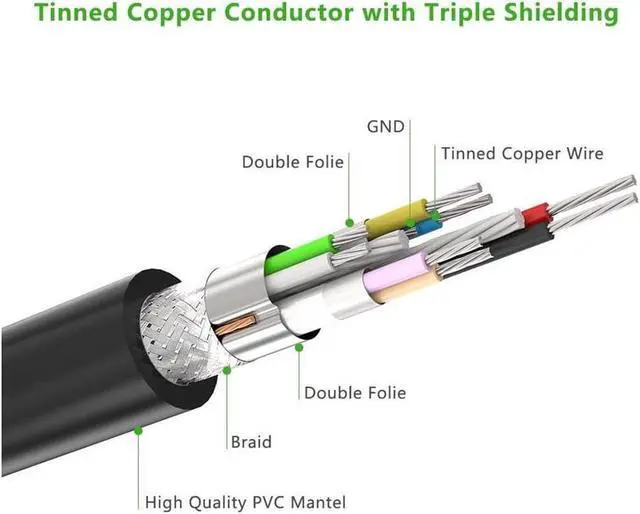 SUPER PERFORMANCE: The cable features corrosion-resistant tin-plated bare copper conductors, gold plated connector and foil & braid shielding that provides protection against interference from EMI/RFI signals thus enabling high performance.