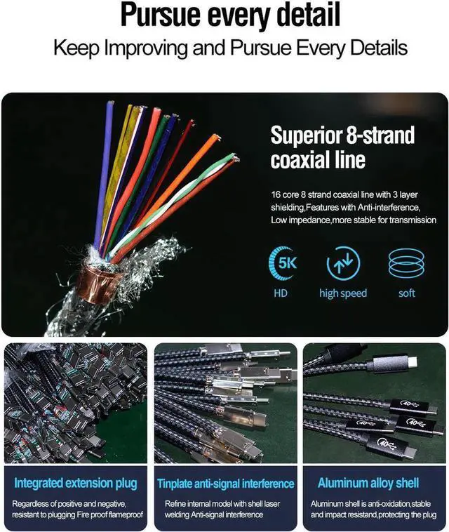 • [High-Speed transfer of 40Gbps] USB4 Cable supports up to date transfer of max 40Gbps. The speed is 4 times that of USB 3.1 (gen 2). NOTE: The transfer speed depends on the speed supported by your device port.