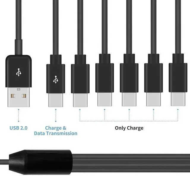 Multi USB C Splitter Cable, has Six ports which can be fast charging, one of Marked Port which can also be support QC 3.0 charging function and data transmission. 6 type c charging head in 1 cable make the phone charger simple, lightweight and portable.