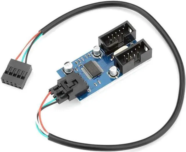 in (30cm) connector a: 9 pin usb 2.0 male connector b: 2x 9 pin usb 2.0 female usb 2.0 splitter with double sided foam tape, it is available to fix on the main board or chassis. including: 9 pin usb header extension pcb board * 1pc9 pin usb extension splitter cable * 1pcfunction: internal usb 2.0 9pin 1 to 4 ports hub duplicate motherboard usb 2.0 header, convert motherboard from 1 usb 2.0 male to 2 female with a 30cm usb 2.0 internal cable. designed for motherboards hub connecting, self-stick and easy