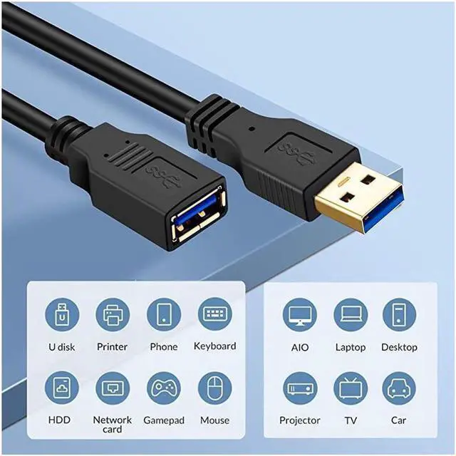 *****Flexible&Durable: With metal wire braid inside, the cable is flexible and resistant to pull and drag. The gold-plated connectors can bear more than 10000 times plug. The PVC case is anti-abrasive. *****Enjoy SuperSpeed USB 3.0 data transfer rate at up to 5 Gbps, 10x faster than USB 2.0 *****High performance USB 3.0 extension cable extends the connection between a computer or Windows tablet and both USB 3.0 and USB 2.0 peripherals including hard drives, USB hubs, mice, keyboards, flash drives, printers, and more*****Fully backward compatible with USB 2.0 devices and computers, Perfect for External Hard Drives, TV, Printers for USB Extension.