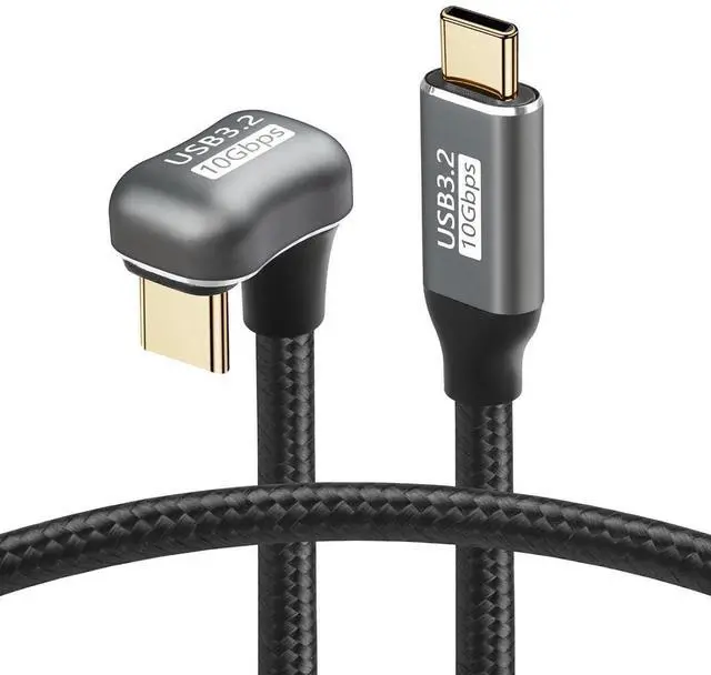 Unique U-Shaped Design: Reverse U-Shaped Back Corner USB-C USB 3.2 Type C Male to Male Extension Cable 10Gbps 100W with Sleeve Designs the Type-C connector into a reverse U-shape. The slanted angle allows you to connect it to a female port even if space around the port is limited.
