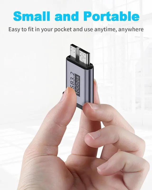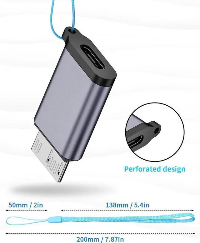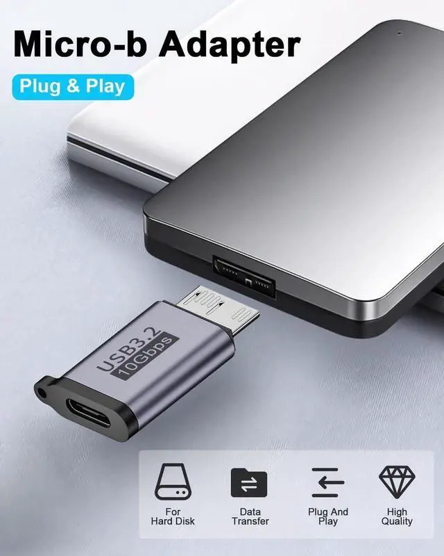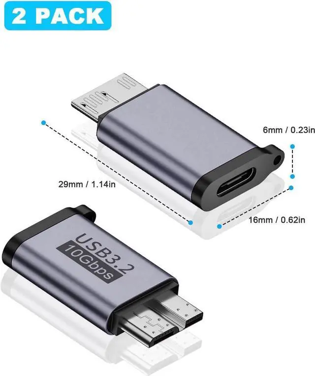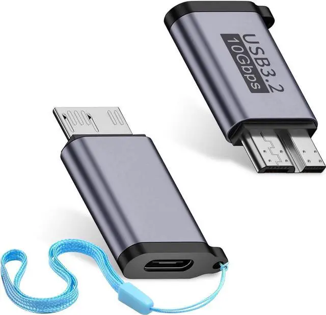 USB C to Micro B Adapter: It is plug-and-play, with a mini-size design that is easy to carry and provides a secure and stable connection between portable external hard drive drivers and laptops. It comes in a package of 2 Micro B to USB C adapters, with a male-to-female connection and a keychain strap included.