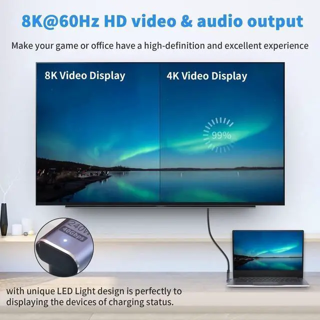USB Type C 90 Degree Adapter: Support the 240W PD Fast charging and 8K Video Display. It can realize the maximum 5V/3A-20V/5A, can provid the fastest possible charging for your devices. When you use the USB4 Cable, it can support 8K@60Hz HD video & audio output, and it make your game or office have a more high-definition and excellent experience.