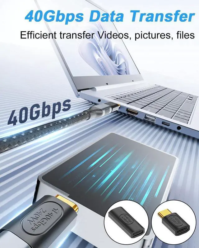 40Gbps data transmission and 8K video outputUSB C to USB C Adapter can support multitasking, data transmission up to 40Gb/s and 4K@60Hz or even 8K video output. It can not only be used with docking station/USB hub multi-port adapter, but also can transmit high-quality and high-speed data through Thunderbolt 3/4.