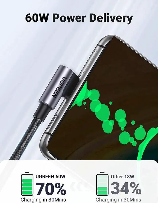 Universal Compatibility: Most USB C Cables on the market are incapable of true fast charging. However, our UGREEN 60W type C to type C cable can compatible seamlessly with cellphones (Samsung S22, Google Pixel, LG, etc. ), tablets (iPad Air 4, iPad Mini 6, etc. ), laptops (MacBook Air, etc. ), Nintendo Switch and more.