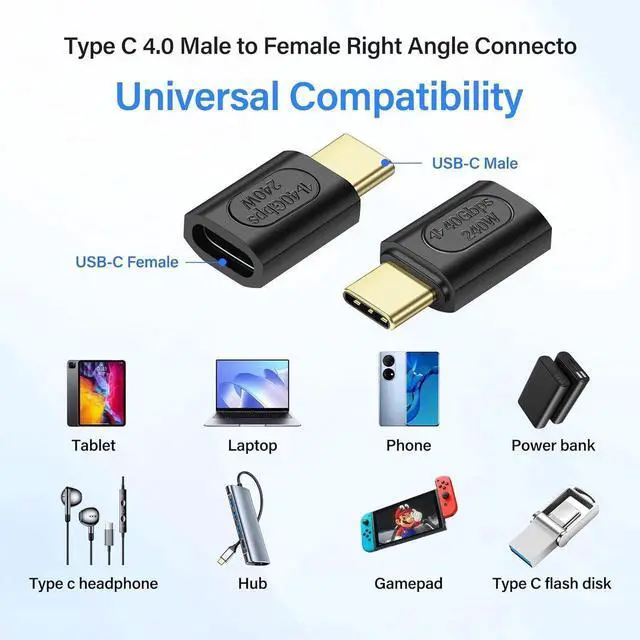 90°Right Angle AdapterPlug and play, small and portable, durable and will not interfere with plugs and operations. Ideal for use in small spaces or near walls. Effectively prevent wear and tear of the cables and input ports of devices. Can also be used as Type-C interface extension