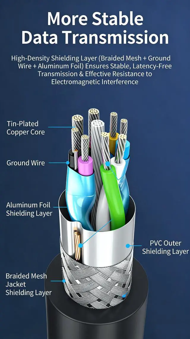 Durable, Tangle-Free Build for Long-Lasting UseThe premium PVC outer sheath is flexible, wear-resistant, and resistant to kinks, making it easy to coil and store without tangling. Reinforced connector joints prevent fraying and breakage, extending the cables lifespan by 30% compared to ordinary USB cables. Its tough enough for home, office, and gaming setups alike.