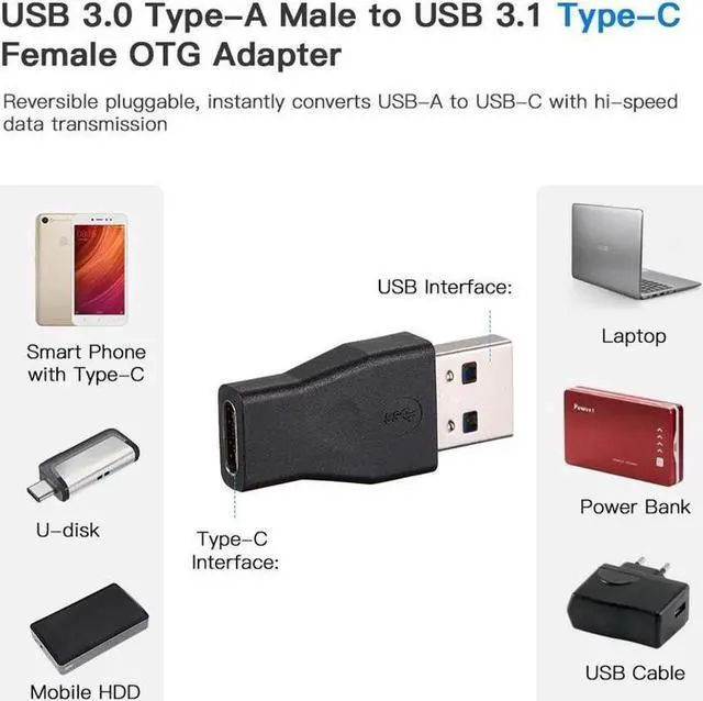 • USB-C USB 3.1 Female to USB 3.0 A Male Adapter Converter