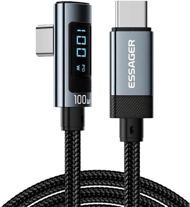 Elbow USB C Cable with LED Display, [1 Pack 3.3 ft 100W] 20V/5A PD QC 4.0 Fast Charging USB C to USB C Cable, Nylon Braided Phone Charger Type C Data Cord for iPad Pro MacBook Air Samsung