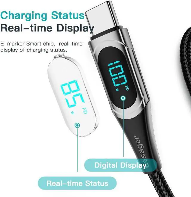 LED Power Digital Display: The USB-C to USB-C cable feature built-in E-mark chip to support high power and current(20 voltage/5 amp). With digital data display advantage, this fast charger cord can show charging status and signify high power process.