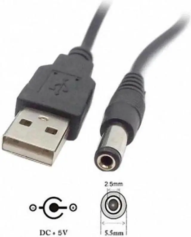 USB 2.0 A Type Male to 5.5 x 2.5 mm DC 5V Power Plug Barrel Connector Charge Cable Provides 5V DC from USB, Power devices from a USB to 5.5MM port For small electronics and devices which use an 5.5 mm barrel jack for a power cable Length: 100 cm