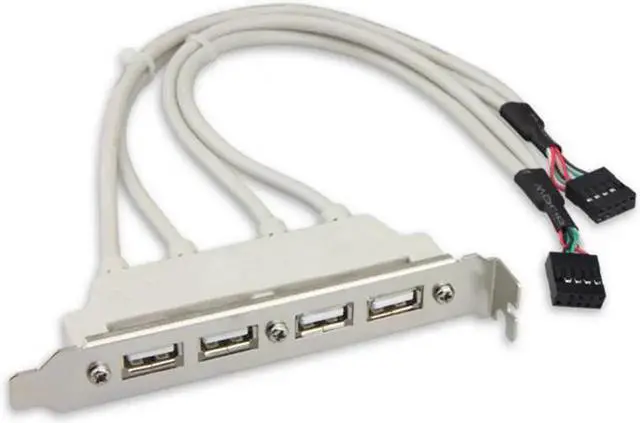 This USB 2.0 Type A Female to Motherboard Header Adapter features a 9-pin USB header connection, as well as a regular4 Ports USB A (female) port.