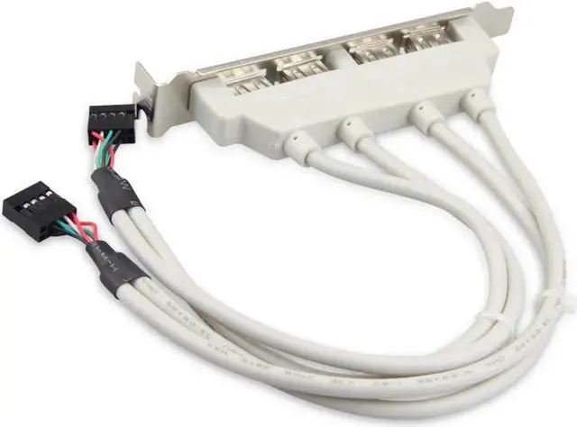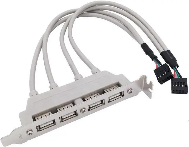 This USB 2.0 Type A Female to Motherboard Header Adapter features a 9-pin USB header connection, as well as a regular4 Ports USB A (female) port.