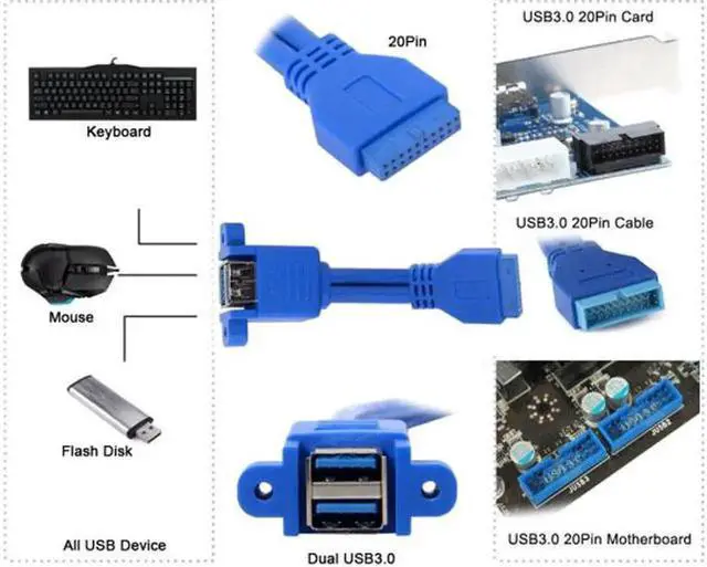 With this cable, you can directly board 20pin socket, converted to 2 usb 3.0 socket! Very easy to use USB 3.0 data cable connected to the chassis front panel of USB 3.0!