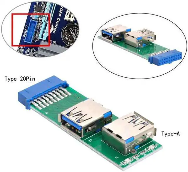 • Dual Side USB 3.0 A Type Female to Motherboard 20Pin 19 Pin Box Header Slot Adapter PCBA with LED