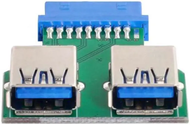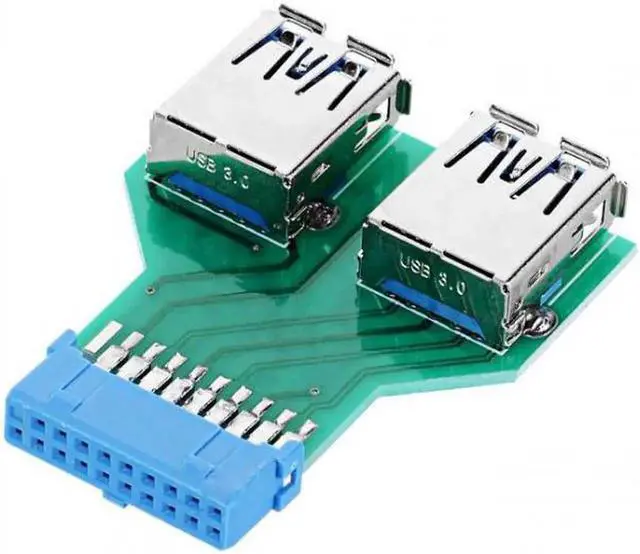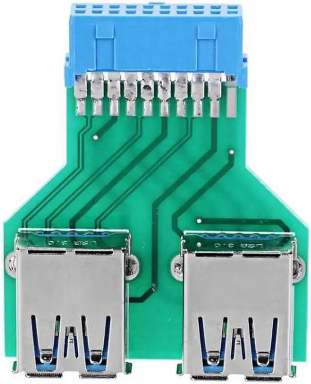• Dual USB 3.0 A Type Female to Motherboard 20 Pin Box Header Slot Adapter PCBA