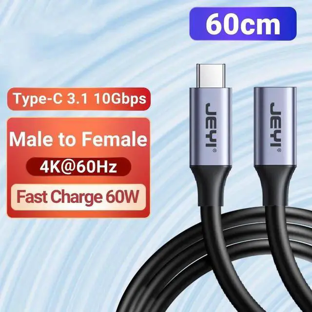 USB-C male to female cable offers charging speed up to 60W (20V 3A). This USB C extension cable supports up to USB 3.1 Gen2 (10Gbps) data transfer.