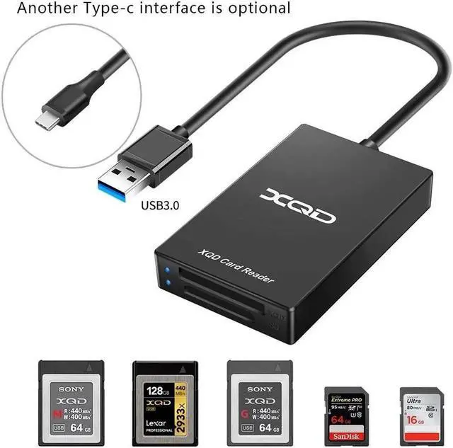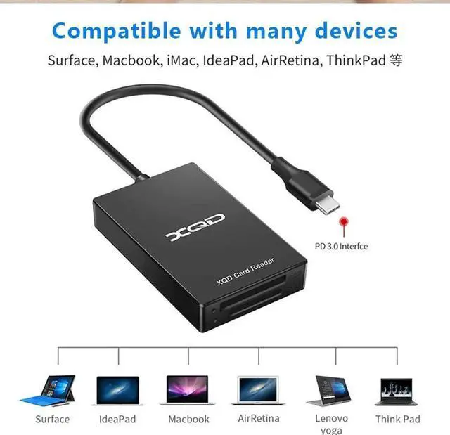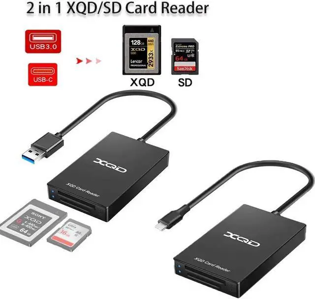 XQD Card Reader: Dual slot SD/XQD reader is designed for photographers, which is easily to download pictures and videos from your XQD card reader to your laptops or computers via the USB C interface, offer you versatile transfer solution between multi-format memory cards and PC or tablet.