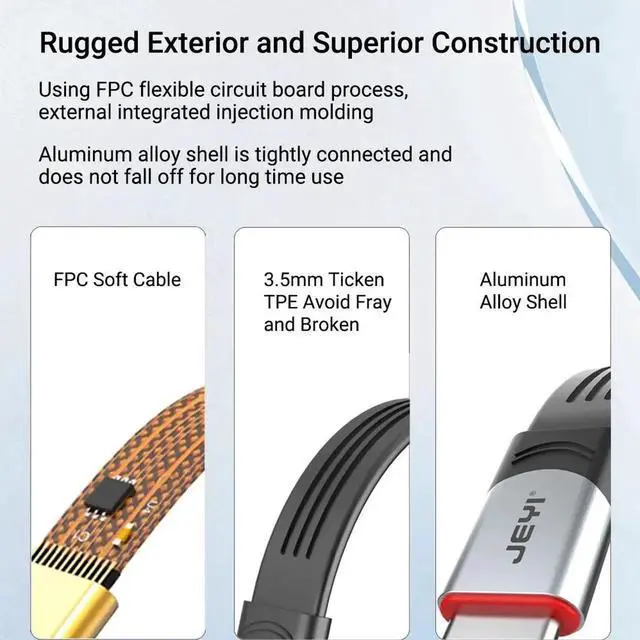 More Durable: Premium TPE flex core and FPC flexible cable outer body. In the test, it can withstand 15, 000 bends and 10, 000 insertions and removals.