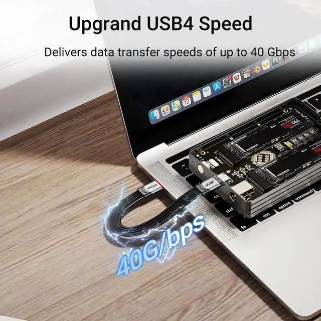 The USB4 cable offers lightning-fast data transfer speeds of up to 40Gbps, allowing you to move large files in seconds. It is fully backward compatible with USB 3.2, 3.1, and 2.0 speeds and devices (data transfer speed depending on your device support).