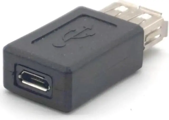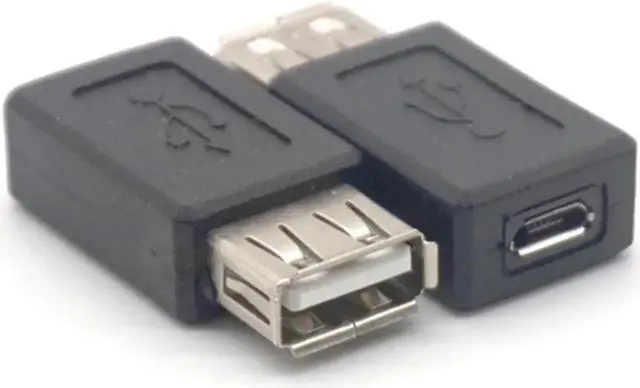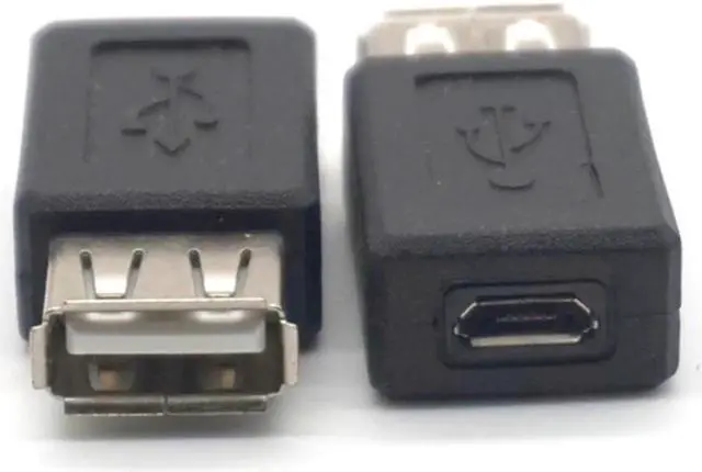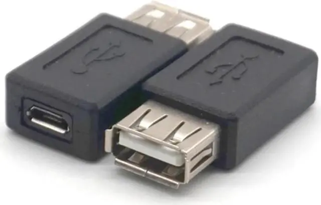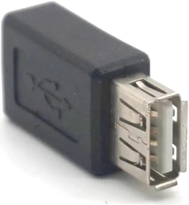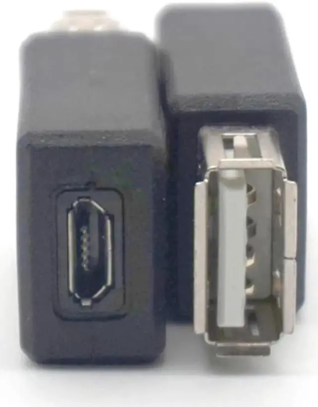 USB Type A female to Micro USB female. Supports data transfer speeds up to 480 Mbps. Fully shielded to help reduce EMI and other interference sources. Color: black Quantity: 5pcs