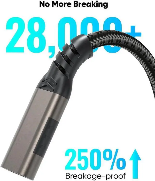 [Enhanced durability] Made of premium nylon-braided which adds extra durability, 32AWG pure copper core which can bear 28000+ bending and keep high-speed transmission rate and signal more stable. with the upgraded aluminum connector and exclusive laser welding technology ensure that metal parts will not break.