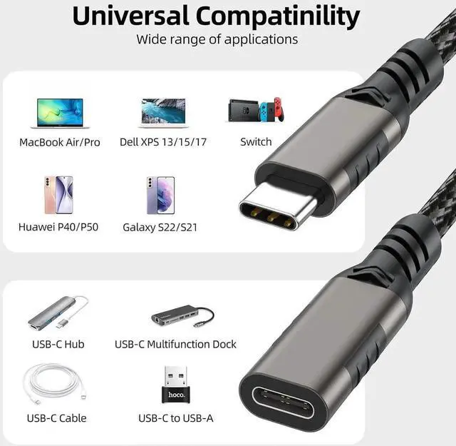 [Wide Compatibility] Compatible with most USB C built-in devices, like i-Phone 15 series, Galaxy 24/23/22 series, Surface Go, iMac Pro, Mac-Book,XPS 13/ 15 and more. NOTE: This cable not work with any thunderbolt 3 docking/hub/cable