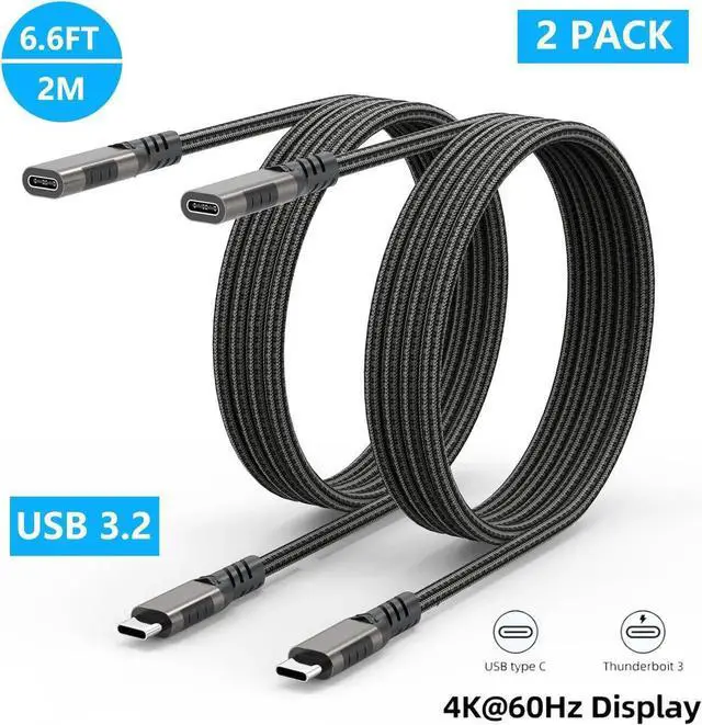 [2 PACK] USB C Extension Cable 6.6FT/2M, 20Gbps USB C Extender USB 3.2 Gen2x2 Type C Male to Female Cord, 100W Fast Charging Data Transfer Compatible for Mac-Book Laptop i-Phone 15 Charger