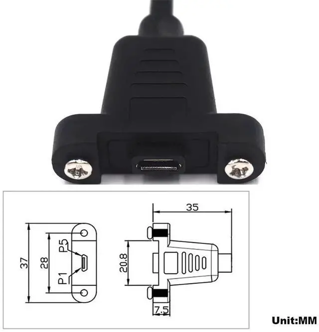 • The micro USB female comes with 2 mounting holes for one mounting plane or panel. Secure the cable with two screws. This is the unique feature of the cable, which is different from others. 2 screws in the package.