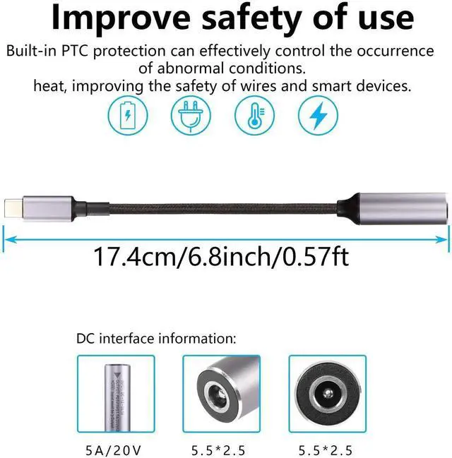 Type-C equipment can be powered or charged through standard DC5525 plug / adapter, which is suitable for all kinds of small chargers, mobile phones,laptop, etc.