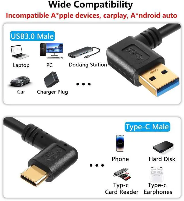 • Wide Compatibility - 90 Degree USB type c spring cable compatible with phone, tablet,laptops, power banks, bluetooth headset etc type c port devices.(NOTE: PRODUCT DOES NOT WORK WITH TYPE C PORT A*PPLE DEVICES, CARPLAY, AND ANDROID AUTO)