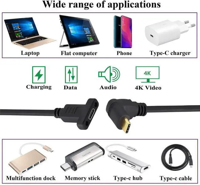 90 degree Up& Down angled Type C 3.1 USB panel mount screw extension cable for mounting to PCI bracket, You can use this Type-C 3.1 cable to install on the front of the computer case.
