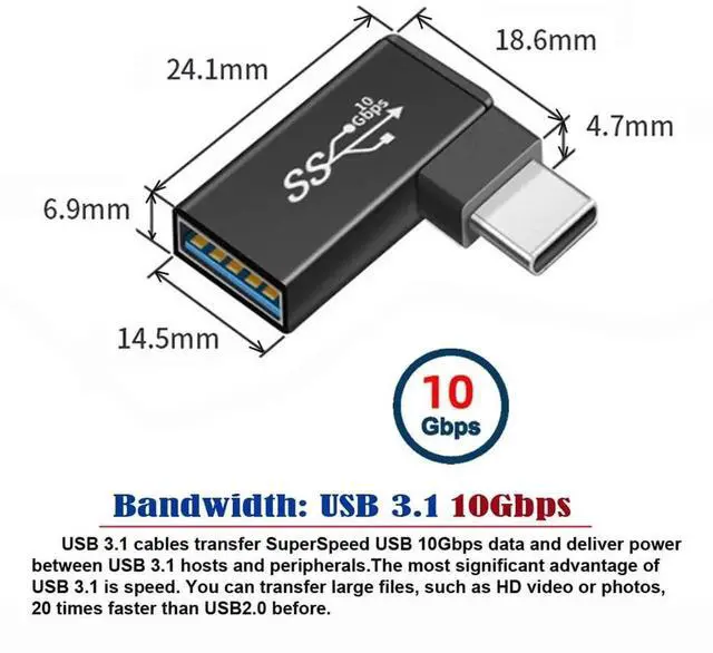 USB-C Type C to USB 3.0 Female OTG Adapter Right Angled 90 Degree for Mac Laptop Cell Phone